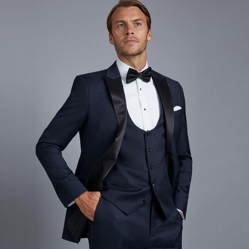 Prix 2017 Nouvelle Arrivée Bleu Marine Smoking Hommes De Trois Piece