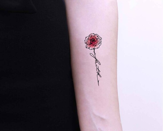 Rose With Faith Quote 2 Temporary Tattoo Watercolor Set Of 2 Sheets Gift Ideas For Her Pfrs Wc01