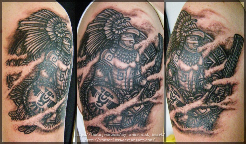 Fotos Tattoos So Aztec Eagle And Warrior Tattoo On Shoulder