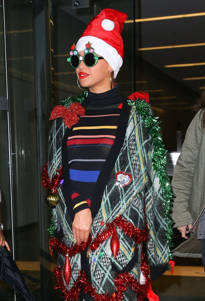 Beyonce S Christmas Themed Getup Beats Your Ugly Holiday Sweater