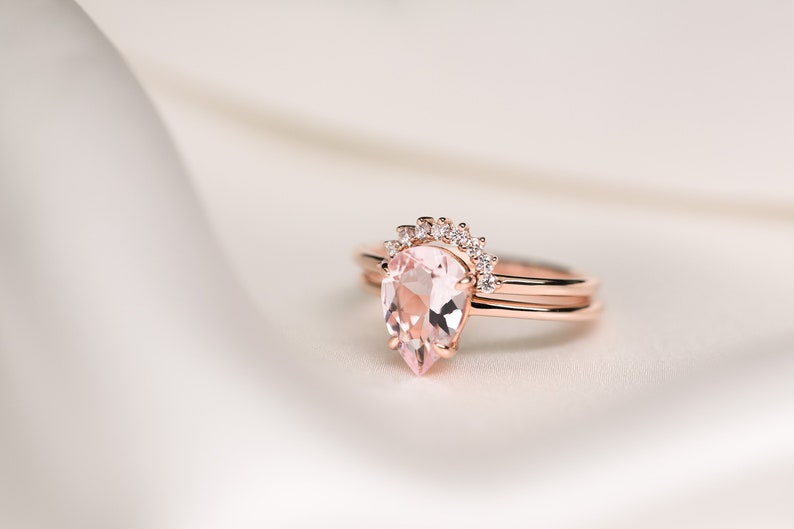 14k 18k Gold Pink Morganite Engagement Ring Teardrop Ring Gemstone Anniversary Ring Wedding Ring Personalized Ring Purplemay R071