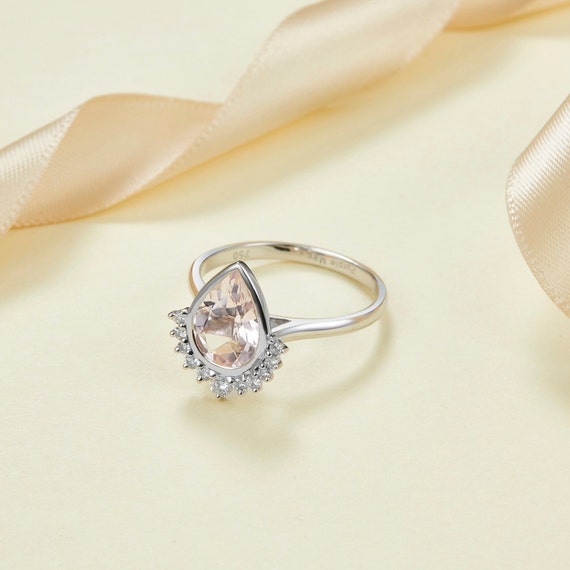 Vs Pear Cut Morganite Ring Natural Pink Morganite Engagement Ring Solid 14k White Gold Ring Wedding Ring Propose Ring