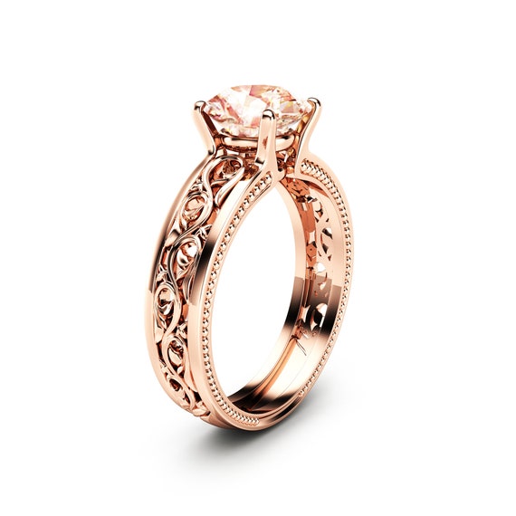 1 5ct Morganite Engagement Ring 14k Rose Gold Morganite Ring Unique Filigree Engagement Ring