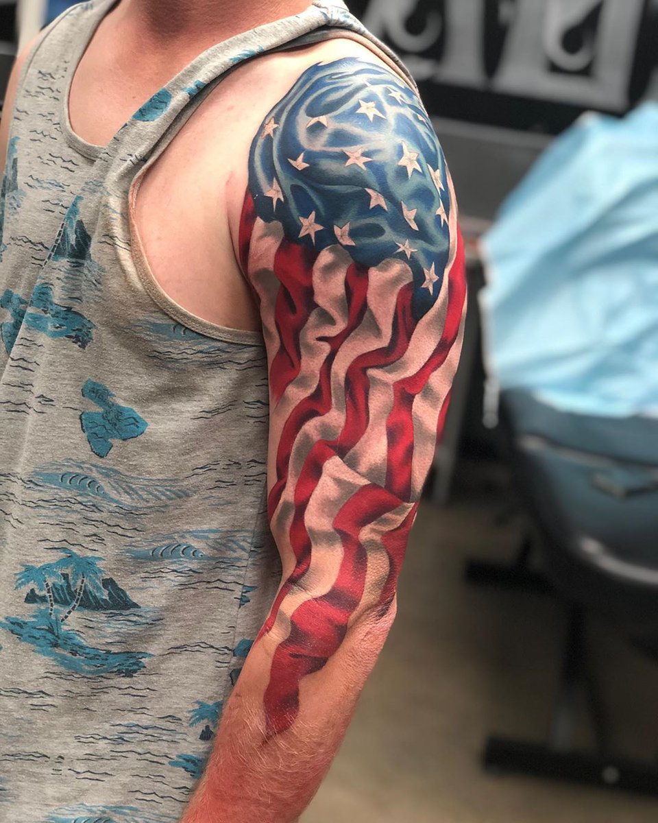 Amazing American Flag Shoulder Tattoo Veteran Ink