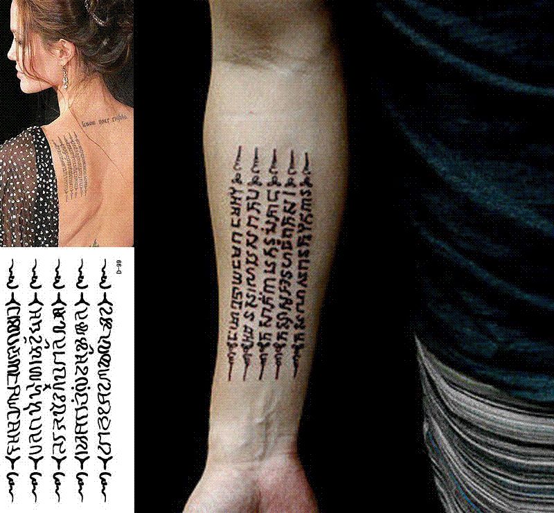 Buddhist Scriptures Arm 3d Tattoos Angelina Jolie Temporary Tattoo Sticker With Paragraph High Quality Women Sexy Makeup