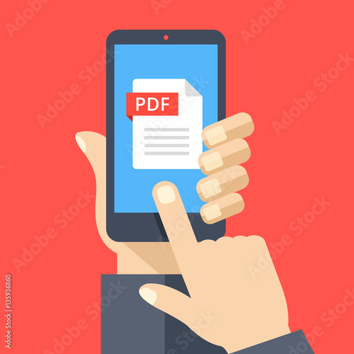 Pdf File On Smartphone Screen Hand Holds Smartphone Finger