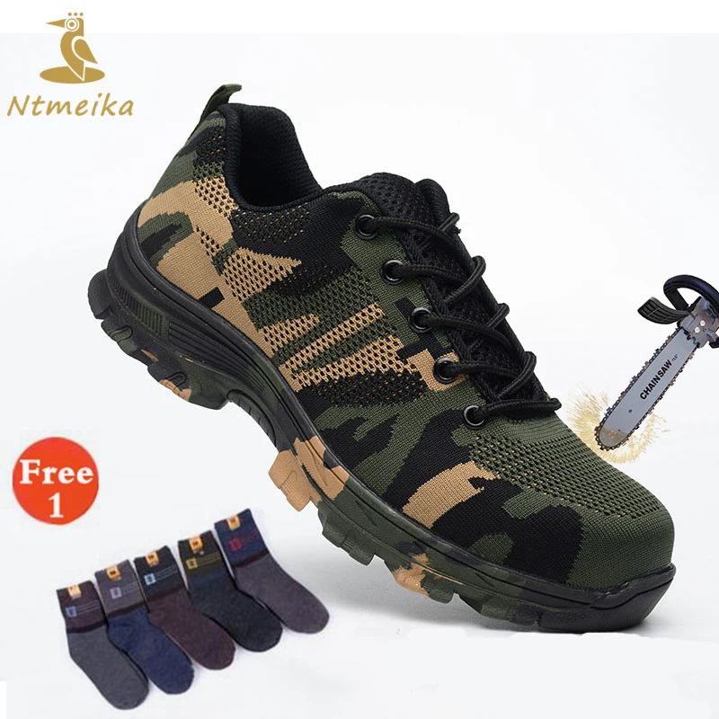 Plus Size 35-46 Men Safety Shoes Steel Toe Steel Insole Casual Military Boots Men Summer Breathable Puncture-proof Work Shoes